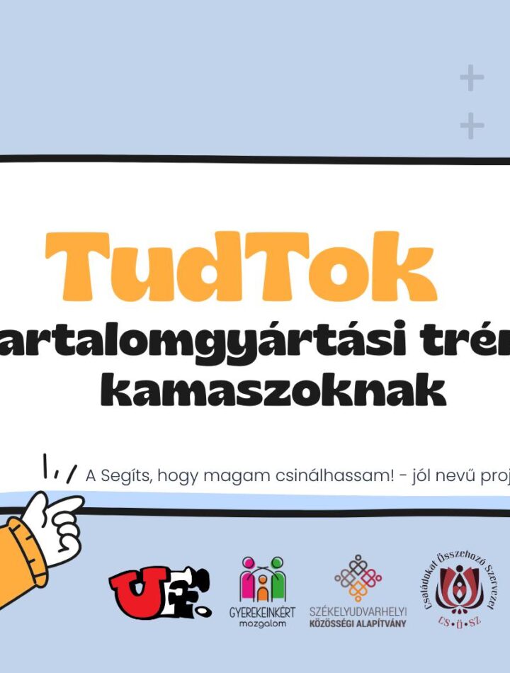 Hiszünk benne, hogy a digitális világ tiltása nem megoldás. A TudTok célja, hogy a fiatalok tudatos tartalomfogyasztókból tudatos tartalomgyártókká váljanak. A tréning során szó lesz: